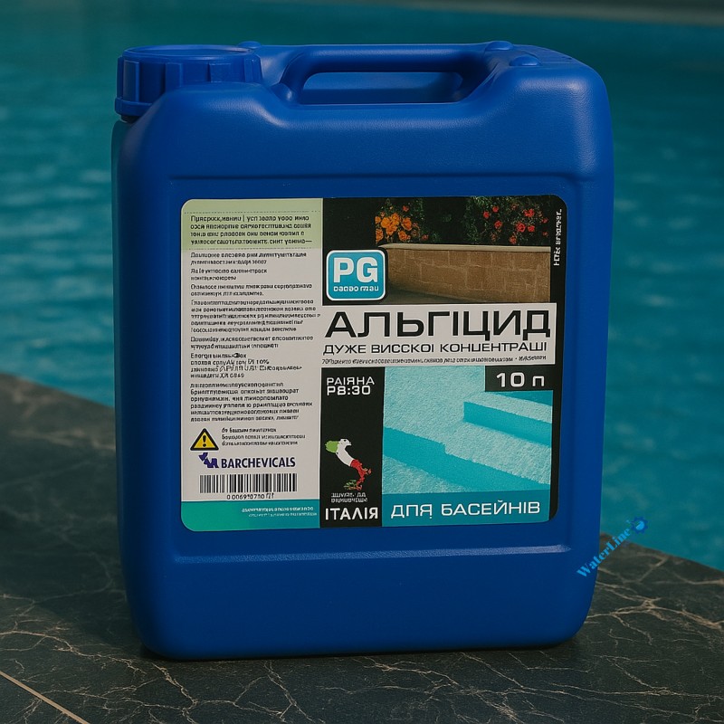 PG-50 Альгіцид BluDELUX - рекомендується для використання у вуличних приватних і громадських басейнах з високою температурою води.