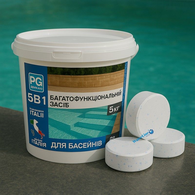 Хімія для басейну 5 в 1, 5кг (Італія) 200г | Мульти табс великі таблетки для басейну PG-48