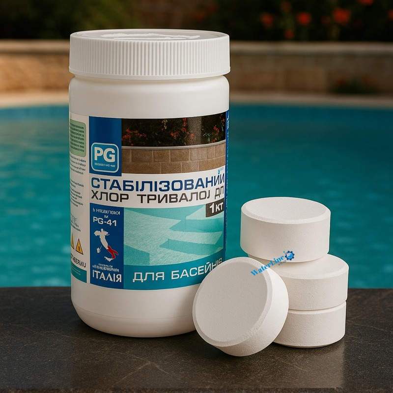 PG-41 Стабилизированный хлор длительного действия 90%, медленнорастворимые таблетки по 200г.