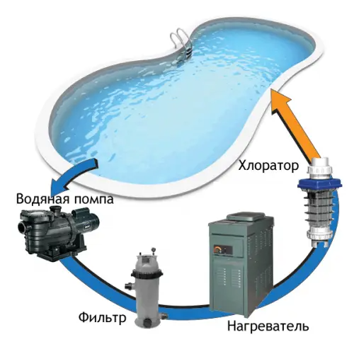 установка циркуляционного насоса сразу за бассейном и перед фильтром;