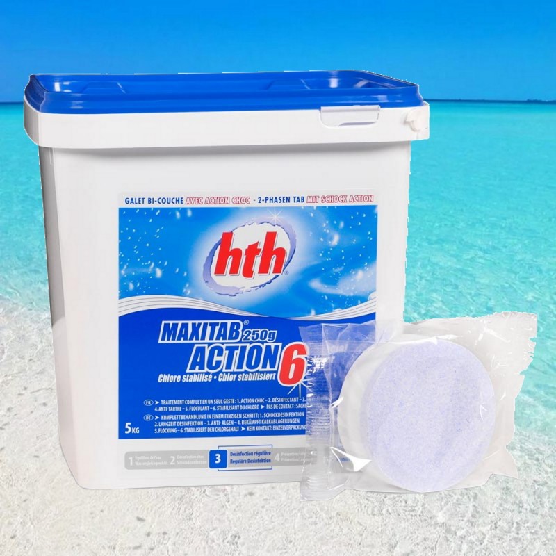 Медленнорастворимые+шок комплексные хлорные таблетки hth MaxiTab Action 6в1 5кг