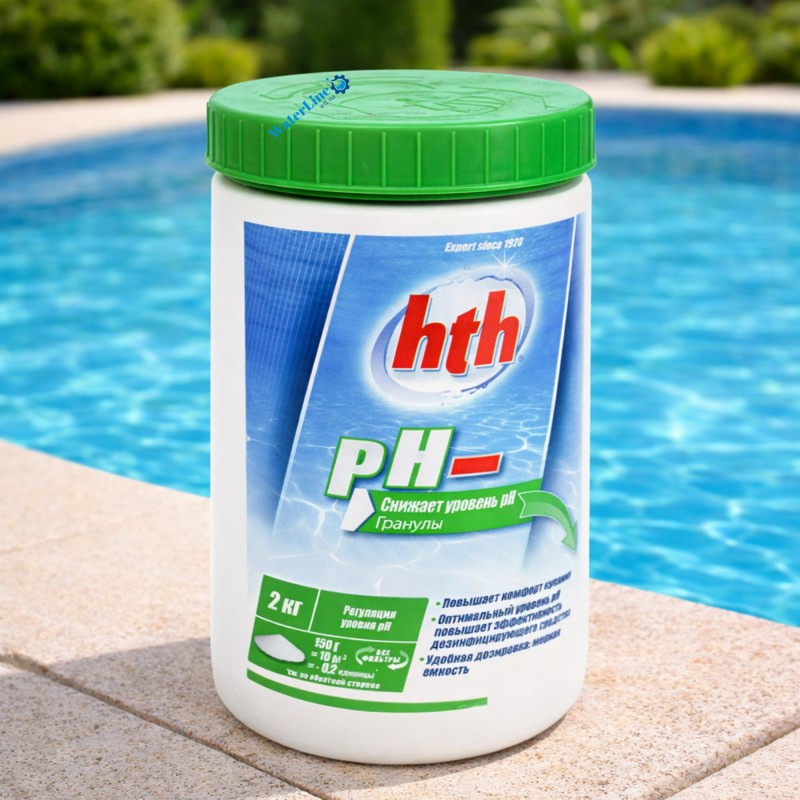 hth pH Moins Micro-Billes — гранулированное средство (микрогранулы) для снижения pH воды в бассейне. Применяется, когда pH выше нормы: при завышенном pH снижается эффективность дезинфекции, чаще появляется помутнение, усиливается образование известкового налёта и ухудшается комфорт купания.