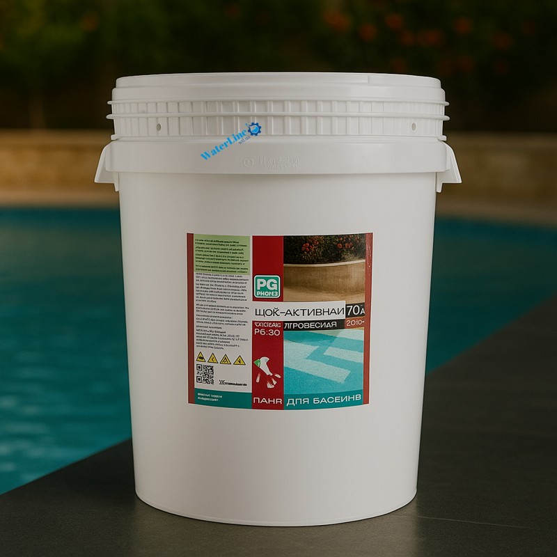 Способ применения: предварительно выведите металлы с помощью PG-15 и отрегулируйте уровень рН до уровня 7.2-7.6 с помощью PG-20 или PG-25. Для шоковой хлорной дезинфекции добавить 15 г на каждые 1 м³ воды или 150 г на каждые 10 м³ воды. Проводить шоковую хлорную дезинфекцию рекомендуется ежемесячно (и при дополнительной необходимости). Препарат предварительно растворить в воде в пластиковой емкости и влить в воду бассейна против форсунок при включенной фильтрации.