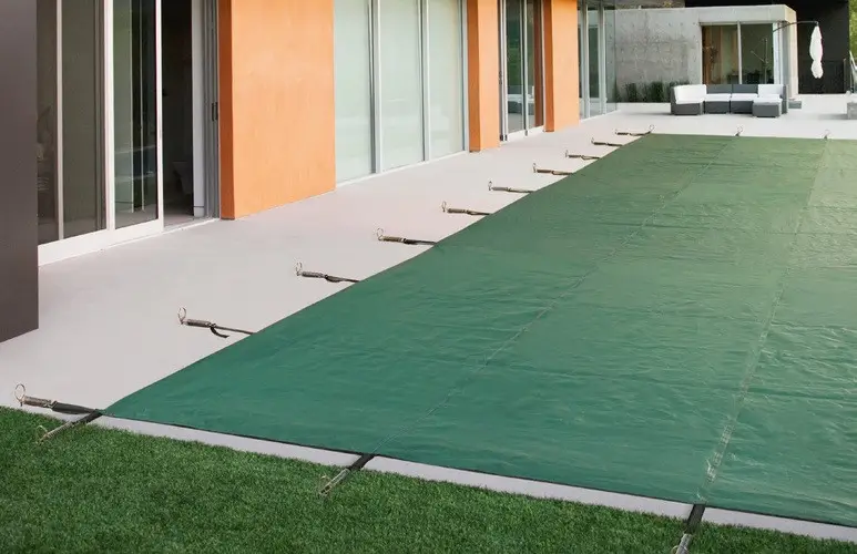Композитные бассейны. Имеют схожую процедуру консервации, однако сливать воду из такого резервуара не нужно. Уровень воды снижают только наполовину, а перед этим производят уборку мусора с поверхности, очистку стенок и дна, демонтаж оборудования. В композитных бассейнах также размещают воздушные подушки, используя готовые компенсаторы, пенопласт или пластиковые бутылки. На последнем этапе бассейн покрывают специальным тентом.