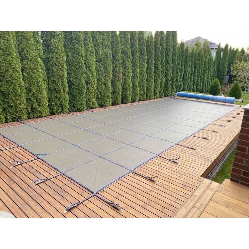 Количество креплений для покрытия рассчитывается исходя из его площади, с учетом максимально возможной нагрузки. Благодаря физическим свойствам, покрытие для бассейна SHIELD™ похоже на мембрану. Оно пропускает дождевую, талую воду, но препятствует попаданию пыли, листьев, песка и других загрязнителей в чашу бассейна. Это позволяет воде не накапливаться на поверхности покрытия в виде опасных «водных карманов». Зимний чехол для бассейна станет надежной защитой вашего водоема в холодное время года благодаря особой прочности материала из которого он производится. Такой материал должен выдержать слой выпадающего снега в течение зимы.